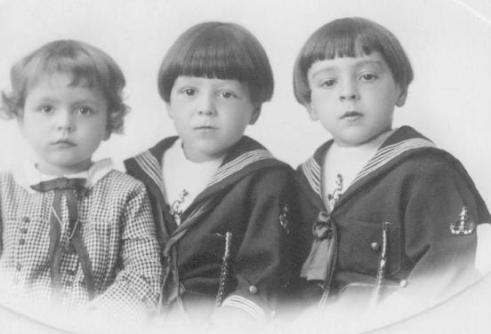 ![]() Figure 1.--These three Dutch broyjers were photographed about 1910. he two older boys have identical bangs and sailor suits.. |
