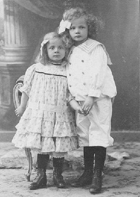 Some children had their hair styled identically. This of course was most common for like-gender siblings. There are numerous instances in the photographic record when like gender siblings, bith brothers and sisters, had their hair styled identically, especially when they were close in age. Younger brothers, however, might also have identical hair styling with their sisters, although this was less common. Differences in age and hair type, however, meant that this was less common than coordinated styling--at least for the well to do. There was identical styling for the less affluent as well. Here he lack of time and money tended to incourage mothers to adopt simple basic styles that were easy to maintain, such as bowl cuts or close cropped hair.