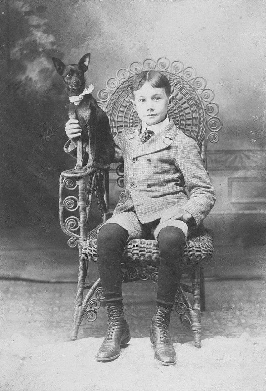 Older boys with center hair parts were not very common in the 19th century, at least until the 1890s. Many younger boys with ringlets had center parts, but center parts for older boys with short hauir were not very common in the 1880s. This seems to have changed at the end of the century. We note boys with near-center parts in the early-1890s. A good example is an unidentified Philadelphia boy. And we begin to see actual center parts by the end of the decade, boys with short hair parted in the middle. We note younger boys with fashionable center parts at the end of the century in the 1890s. And we have found some older boys with these center parts, but not very many. The exception here was Fauntleroy ringlet curls. Virtually all of the 19th century examples we have found date to the 1890s. We are still working out the age trends in the 1890s when we see most of the center-part boy portraits. We have not yet, however, found many actualy dated examples. So far the examples we have found are portraits for which we have had to roughly estimate estimate the date. Nor are we sure about year trends within the decade. Most of the portraits we have fond with center parts are pre-teen boys. The boy here in the later part of the decade looks to be about 8 years old (figure 1). We think teenagers by the end of the decade may have begun wearing center parts, but we have not yet been able to confirm this. The center parts by the turn-of the century had become seen as very stylish. And while at first just seen with little boys we see even older teens with these center parts by the turn-of-the century. A good example of a younger boy is an unidentified boy in 1893. For the most part these center parts were plain, but mothers being mothers somtimes added some stylish flairs.