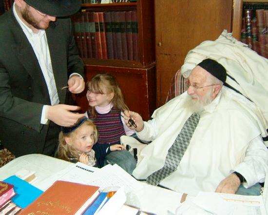The first haircut is accompanied by a special ceremony called an upsherin which also marks the beginning of the child's Jewish education. There are a variety of ways to celebrate this occassion. There is an accompanying party and celebration to which friends and relatives are invited and the ritual is usually presided over by a rabbi. Family members, then friends, all take turns a cutting a