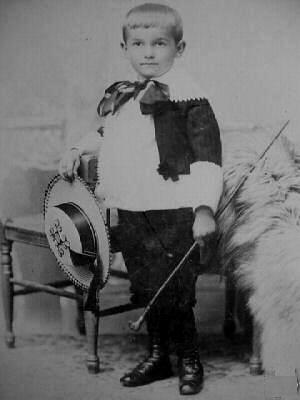 Gradually wide-brimmed hats became more popular. We note hats in the late 19th century with both rounded and flat crowns. We note a British boy, Carl Roos, wearing the same Royal Navy style that the Prince of Wales wore in the 1840s. We are not entitely sure when the boater-style had appeared , but we note them being worn in the 1880s.Sailor hats were not just worn with sailorcsuits, they were worn with many other out fits. Wide-brimned sailor hats were popular, for example, with Little Lord Fauntleroy suits.