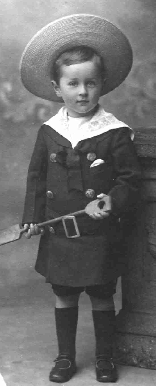 We believe the fashion of the wide-brimmed sailor hat for boys originated in England along with the sailor suit for boys. The style also influenced women's millenery. The hat was first worn by a British boys in the 1840s when the young princes wore them. Queen Victoria and Prinnce Albert saw it as a way of popularizing the monarchy. The famous Winter hatlter Portrait for Queen Victoria shows Prince Bertie wearing a sailor ht with a moderate brim. We do not think it became a widely popular style, however, until later, possibly the 1860s. This is difficult to assess because we have so few English photographs from mid-century. We do note that it launched a major children's fadhion style. The wide-brimmed ailor hat was not as common as the sailor suit itself, but it was a major stule in the late-19th and early-20th century. We continue to see moderate brims in the 1870s. An unidentified Berwick boy, we think in the 1870s is a good example. Wide-brimmed sailor hats were not only worn with sailor suits, but became associated with the Fauntleroy craze. The boy here is aood example of the wider brimmed styles that appeared in the 1880s and continued tobe worn inthe early-20th century (figure 1). Notice how for portraits the wide-brimmed hats werevtuerned up so you got a few of the boy's face and hir. This does not mean that this was how the children actully ore them. The heyday for the wide-brimmed hats was more limited than the sailor suit. They were primarily wotn by younger boys, pre-school and early primary school children. Some of the hats seem to almost engulf the small boys who wore them. Many had elastic chin straps and hats bands with trailing streamers of various lengths