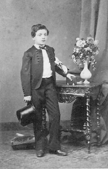 An American boy, Arthur J. Miller, wore a top hat with a tuxedo about 1870. Another good example is a very young American boy, probably in the 1870s.