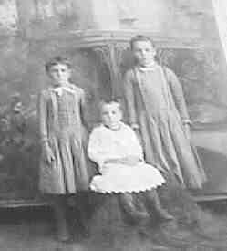 Some mothers while choosing identical or similar styles for the children allowed age destyinctions of various types. This varies greatly from familt to family. Some individual images offer interesting insights into 19th Century families and the clothing chosen by mothers in that period. Unfortunately usually information on the families is not available, only the image is available. We note one late 19th mother dressed her three children in dresses (fgure3). They look to be two boys and a girl. The two older children are in an identical colored dress. The younger boy wears a white dress. The older girl appears to have a small colored hair bow. Interestingly the boy on the left seems to have out grown his dress. (Note how high the sleeves are above the wrist.) That raises an interesting question. Presumably the dresses were bought at the same time, or the elder child's bought first. You might think therefore that the elder child would outgrow the dress first. The only difference in the dress that I can detect are the different collar bows on the two older children. The small size of the bows and the lack of large hair bows suggests to me that the photograph was taken in the late 1870s or early 1890s.