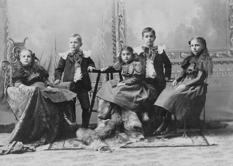 We see quite a number of large families in the 19th century and early-20th centry. A factor here is that America was a largely rural country into the early-20th century. And farm families are commoly large. A dozen children were not all ghst uncommon. Cities families were almost alays smaller, but a half adozen children were fairly common. We notice quite a few family portraits with numbers of children. We see examples of the boy and girls being dresses in sparate indentical outfits, meaning skirted outfits for the girls and pants for the boys. Here therecould be age complications. This of course meant that that a much larger age range for dressing the children alike, meaninh very young children and tenagers could be included in the mix. We have not found a huge number of these group porttaits but we have fond some. This convention seems less common in America than in Europe. Most of the examples we have found come from the 19th and early 20th century when large families were the most common.