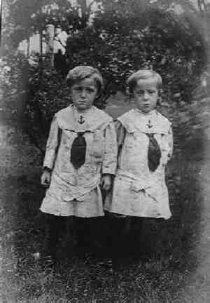 Today it is most commom to dress frateranal brother/sister twins in boyish styled clothing when dressing them alike. In the 19th and early 20th centurt, girls did not wear boys' fashions as they do now. In fact, when dressing twins alike it was common to outfit them in dresses. This was a reflection of the time as younger boys in the 19th cerntury common wore dresses just like those of their sisters.