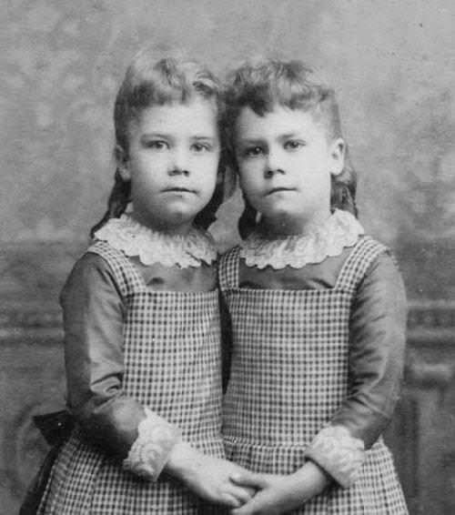 Avaiable images confirm that twin sisters were commonly dressed alike in the 19th century. Of course this almost always meant identical dresses at the time. We believe that this was the case throughout the 21st century, but there are of course mang more photographic images available for the late 19th century when photography was more developed and less expensive. We believe that while both boys and girls were commonly dressed alike in the 19th and even early 20th century, it was more common to dress older sisters alike than older bothers. Of course one problem in the 19th centiry is that it is not always possible to dertermine if younger children were boys are girls because boys not uncommonly wore dresses.