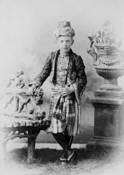 We do not know a great deal about costume trends in different countries. Here our experience is largely American. A reader writes, "I have seen many pictures of acrobat/circus performers dressed in strange costumes from the mid-19th century 1800s--about as unlike typical Victorian dress as one could get. I read somewhere that they may have been dressed this way to appear like court jesters from medieval times. Do you think there is any truth in this?" We have seen those portraits as well. The first we have seen were CDVs from the 1860s. These costumes may have been worn earlier and we don't see them because because was not as common. We do not think that these were medieval costumes, but rather circus or theatrical performers, but we have very little actual information. A good example is Basil Kite, an American boy, probably during the 1870s. we begin to see well-to-do people wearing fancy dress costumes in the late-19th century. These were elaborate, probably bery expensive costumes. This probably reflects the increasing affluence of industrial America. We are not entirely sure how they were selected. Nor do we know just how they were used. Some people may have dressed up primasrily for a hotograph. We think, however, that the primasry purpose was fancy dress parties. And many people wanted a permanent momento. A good example is Howard Lee in 1892.