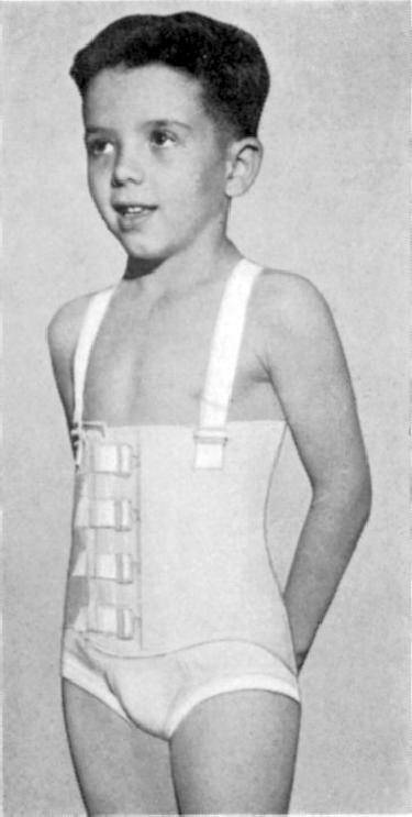 intended for everyday use by normal children. The back brace could be ordered with hose supporters attached for an additional fee. I think this would limit the date to about 1960 or earlier. The firm is Spencer & Co., a maker of corsets. Although a boy is shown in the photo, I believe the garment would be for either gender." HBC thinks it might be a liitle earlier, perhaps the 20s or 40s.