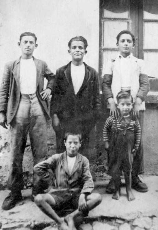 stockings stay up neatly. Of course there were major differences between fashionable city children and rural village children. Here we see five Italian boys in 1930. The photo was taken in Ulussai, a Sardinian Village.