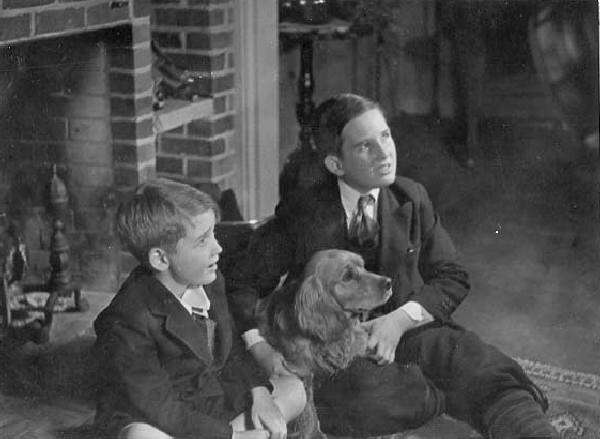 ![]() Figure 1.--Here we see two American brothers at home during the 1930s. Both boys wear the conservative dark suits favored by well-to-do families. Notice that the younger brother has a short pants suit while his older brother has a knickers suit. Notice that the younger brother wears ankle socks rather than kneesocks with his short psnts suit. |