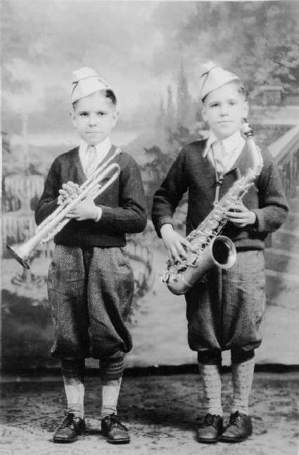 ![]() Figure 1.--These American brothers wear below the knee knickers with patterened kneesocks. Notice how full the knickers are cut. The portrait is undated, but we believe was taken in the earlt 30s. I'm not sure about the caps. The boys may have been in a band. |