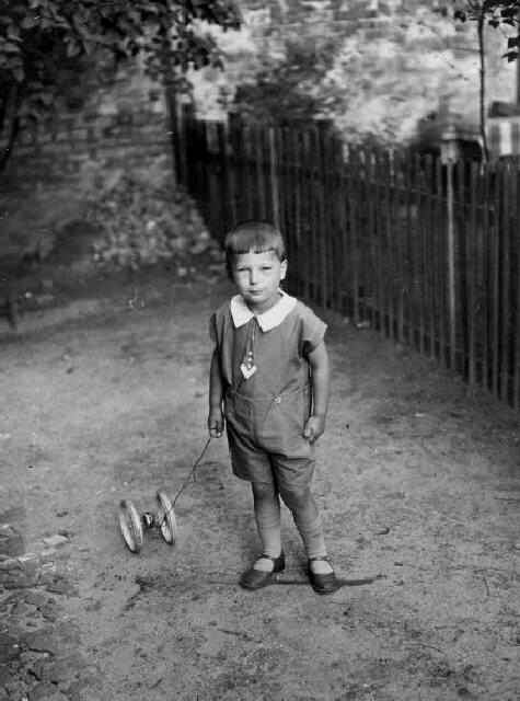 ![]() Figure 1.--This little German boy in the 1930s wears a button-on outfit. Actually it is not clear if he is wearing a button-on suit or a one-piece suit. |