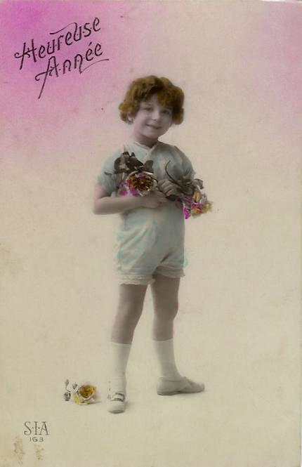 mWe have, however, noted a variety of decorations. They tend not to be very common, but they do exist. Perhaps the most common decoration is stripes. We see boys with striped pants, most commonly for some reason in the 1860s and 70s--at lest in America. A good example is the Van Dusen boys in 1870. This wa a military style, perhaps the Civil war was an influence. They were widely used in military school uniforms. We also see them in American summer camp short pants during the mid-20th century. Many summer camps at the time had uniforms. One popular fad futing the 1950s-60s was a little simulated belt on the back of slacks. I think this was an exclusively American style. It disappeared as jeans became more standard in American schools. We notice some pants done with ruffles. This ws most associated with the Fauntleroy craze, but was not very common. It is a little complicated to see because some times boys wore pantalettes with Fauntleroy suits. We probably see more examples in costumed commercial postcards than actual photographs. The large French post card industry created quite a number of examples. We see jeans being decorated with sequins and other aplique beginning in the 1970s, but this was more for girls than boys. We do see aplique used on pants for younger boys, often bib-front pants.