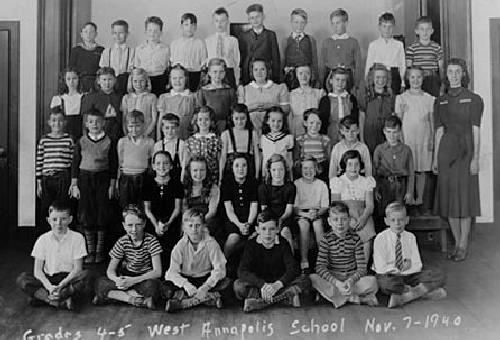 Knickers declined in popularity during the 1930s. We see increasing numbers of boys wearing long pant and short pants by the end of the decade. There were still, however, many boys still wearing knickers at the begiining of the 1940s. This is apparent both from available photographs and the number of knickers offered in catalogs. The photographic record shows a higly variable situation. We notice photographs will all the boys wearing lon pants and others with all the boys wearing knickers and of course mixed knickers and long pants in groups. You can see this in the school portrait here in 1940 (figure 1).