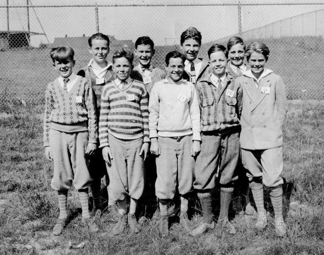 The first knickers we note boys wearing seem to have been the pants that came with suits. We often see pants offered separately, but the suits seem to get more attention in advertisements and catlogs. Often boys had aood suit and the panys from an old suit were worn for casual wear. We see the sandard boys suit from the 1910s through the 30s was a dark knicker suit. There were lighter colors as well, but a boys standard suit was a dark one, commonly worn with dark long stockings. A good example are the knickers suits boys in 1932 wore got their confirmation. Boys by the 1920s began to get knickers that did not come with suits and this became common in the 1930s. They were not seasonal wear, boys wore them in both summer and winter. Long stockings were worn with then even during the summer. This began to change in the 1930s. Knee socks replaced long stocking in the 1930s and we begin to see boys wearing ankle socks during the summer. Many boys wore corduroy knickers to school. Knickers did not, however, have any specific use profiles, they were simply the standard pants worn by boys for about three decades. Boys might have different suits many the jackets where most of the styling was, but knickers were worn with all the different suit types, regardless of the occassion or other usage. Along with the flat cap these became iconic schoolwear. Some parents bought suits with long pants amd knickers. We are now sure how they wound up being used.