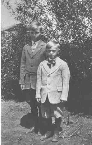 ![]() Figure 1.--The author With his brother Arthur at the time of his sister Mary's wedding in 1924 or 1925. He's wearing the knicker suit he disliked so much. |