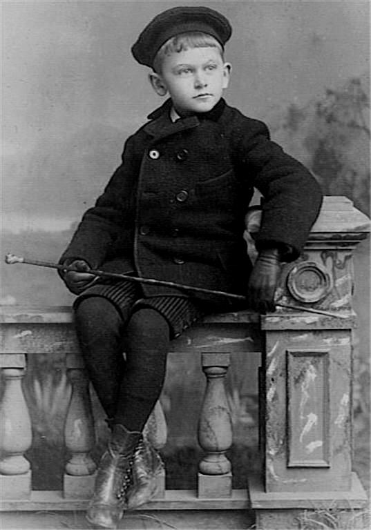 Figure 1.--Knee pants were at first worn well below the knees, commonly at calf level. We begin to see boys by the late-1880s and early 90s actually wearing actual knee-length knee pants. This American boy probably in the 189os wears knee pants actually cut at knee level. The studio was Ayer in Augusta, Maine.
