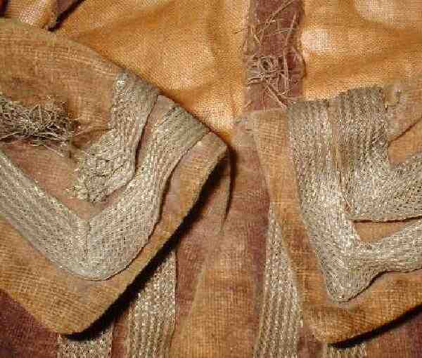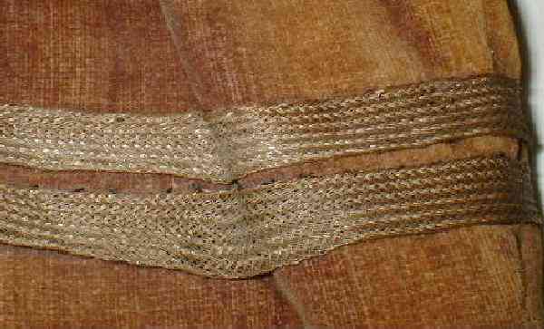 The suit is heavily embroidered. The suit has bric-a-brac trim around each cuff, on the collar, bordering the entire edge of the jacket and on the sides of each pant leg (figure ?). There are no buttons on the jacket and it never had any.