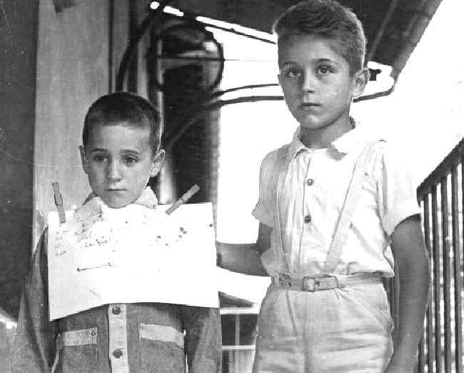 Suspender shorts seem to have been most common in France during the 1940s.  This is a little hard for HBC access with any accuracy because of our relatively limited French aerchive.  The images we have found do show many French boys wearing suspender shorts during the 1940s, but our number of images is still to limited to make any firm assessments.  A factor here is that so many French boys wore short pants during the 1940s.  Many but noy by any means all wore suspender shorts, especially pre-school and primary school age boys.  We note both dressy anbd plsy shorts done with suspenders.  This depended on both the material used and the blouse/shirt worn with them.  The suspender shorts we see in tio the 1940s tended to be short-cut shorts.  We also note suspender rompers that were popular in the 1940s.