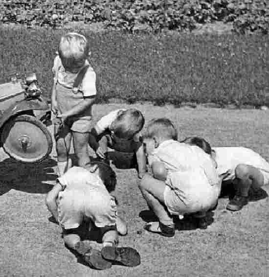 The suspenders themselves were not elasticised, but usually made of the same material as the shorts and were always the same color. The suspenders varied in length. Some were reasonably long, designed to hold the shorts at waist level. Others were quite short which pulled the shorts up above the boy's waist. The suspenders also varied in width. Generally they were quite narrow, about 1/2 inch, but some were wider, occasionally nearly a full inch.