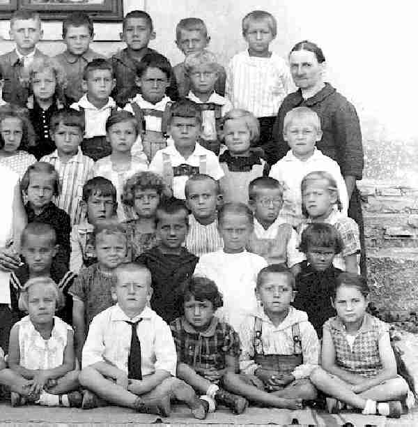 Figure 1.-- Here we see kindergartners from an ethnic German school in a Romanian town whose German name is Zeidenn. We notice quite a number of bpys wearing H-bars in 1931. Several have their suspender straps decorated like lederhosen halters. We are not sure to what extent Romanian children also wore H-bar shorts. Clivck on the image to see the rest of the class.