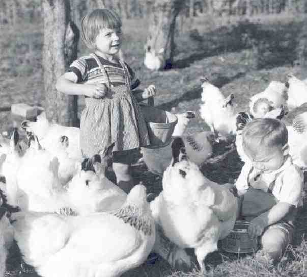 Figure 1.--This Canadin boy looks to be wearig suspender romers, although it is a little difficult to tell. The children are Richard and his sister Lucille Vien. They were photograhed on their family farm in Québec during 1957. Le petit Richard et Lucille, enfants de M. et Mme Armand Vien de Saint-Anselme. 1957.