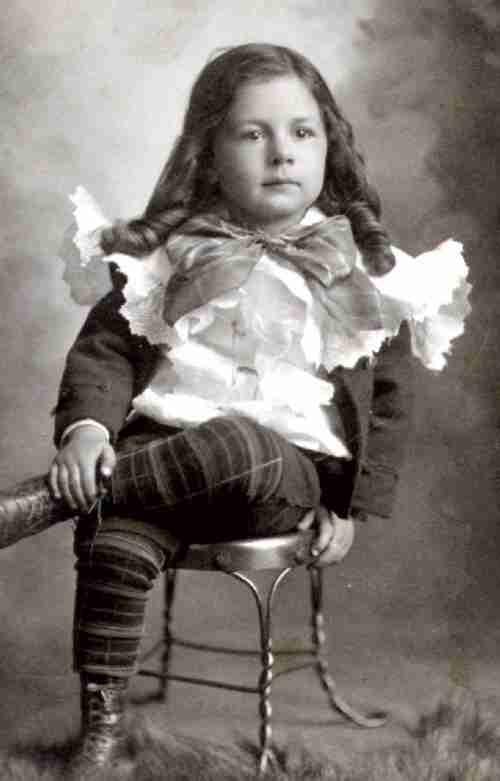 It was the Fauntleroy blouse with the large collars that were most popular during the classic Fauntleroy era, from about 1885-1895. These collars were mostly ruffled with lace trim. After the turn of the 20th century, the lace trim became less common. These large collars extended toward the edge of the boys' shoulders, some even fell down over the shoulders. Others were more stifly starched to make them hold up and not fall down on the jacket. These large collars were commonly worn with very large floppy bows. American boys wearing large collared Fauntleroy blouses were the most likely to wear ringlet curls. HBC estimates, based on an assessment of available photographic images, that about one-third of the boys wearing these blouses in America also wore long ringlet curls.