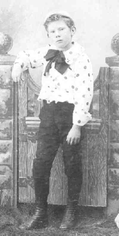 ![]() Figure 1.--This boy in a portrait taken about 1890 wears a polka-dot blouse with large collar and cuffs. Note that the dots appear to be two different colors. |