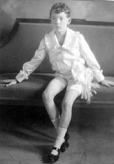 Most of the blouses boys wore were closed-collar blouses. They buttoned at the collar and were sometimes, but not always worn with neckwear. We notice two periods when open-collar blouses were popular. The first was in the early-19th century. The second was duruing the early-20th century. These were fancy blouses in both instances. As they were open-beck vlouses they were made to be worn without neckwear. These seem to have been mostly white blouses. These do not seem to have been major fashion stryles. Rather they were worn by a small minority of boys from affluent families. We have only limited information on the early-19th century. We do note them being worn with skeleton suits. We know much more about the early-20th century. We see boys from aristocratic families wearing these blouses. They might also have been worn at special events like formal weddings, but again this involved only a small number of boys. Large-collar blouses that buttoned were much more common.
