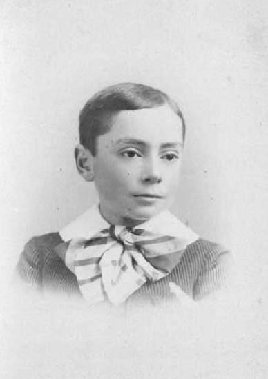 We see American boys wearing very small collars in the 1850s and 60s done in the Eton shape, but rarely worn with bows. Boys in the 70s might wear a small bow looking like a bowtie with their Eton collars. This changed in the 1880s-90s when boys might wear quite large floppy bows with their Eton collars. This was most common for youngr boys, but we see older boys into their younger teens wearing them. We see large numbers of boys wearing large Eton collars are Eton-like collars with floppy bows in the 1880s and 90s. A good example is two Reading brothers. This was in sharp contrast to England wear bows were less common. After the turn of the century, it became more common for American boys to wear Eton collars more like English boys with no bow at all. This was the general pattern by the 1910s. Eton collars were worn with all kinds of different suits. This included kilt suits. A good example is an unidentified New York boy, we believe in the 1880s.
