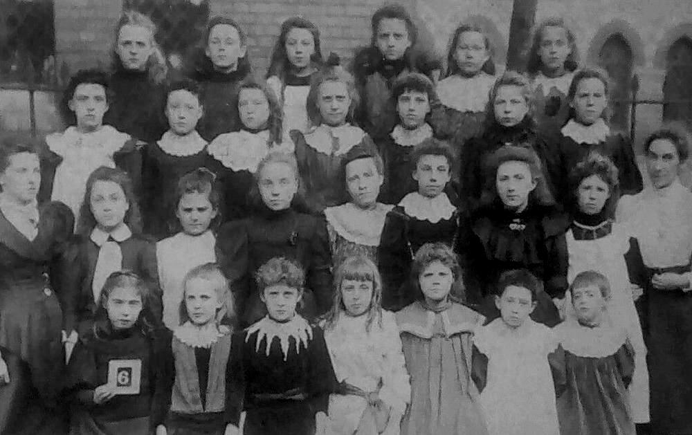 HBC is unsure has to how widely worn lace collars were in England. And we see group portraits that show quite a number of children wearing large collars, many of which appear to have some lace. The lace collar was most prevalent with women, but in the 19th century children from families in comfortavke curcumsrancs wore them, especilly girls. This was mostly younger boys not yet breeched, but duing the Fauntleroy era in the lzte-19th century we also see quite a number of boys with lace collrs because of the Fauntleroy craze. Group portraits of course are more useful in demostrating prevalence than single portraits. We hope to expand this section a we expand our English archive. We have just begun to assess English lace collars and the outfits worn with them.