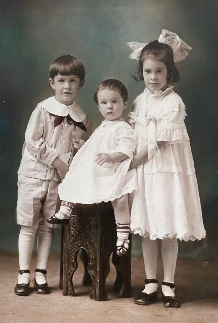 A variety of informal suits appeared for boys in the 1900s-20s. Many were utilitarian informal suits wehich could be worn for play or dressing up. They did not include jackets which were an important part of standasd suits. They could also be worn for a variety of informal occasions. We note American boy Tinsley Armstrong wearing some sort of play suit with a Peter Pan collar about 1910. They included both tunic suits, Buster Brown suits, and Oliver Twist suits. There styling was highly variable with different collars used, but among the many different collar styles were Peter Pan collars. Here Peter Pan collars were just one of the collar choices. Some had large collars. Conventions for dressing up boys were changing. These suits could be used for smart casual occassions that earlier would have required a more formal suit. By the 1910s, knickers were standard for American boys, but many of these suits involved knee pants which continud to be worn for younger boys a while longer. Tunic suits are somewhat of an exception. Here bloomer knickers were more common.