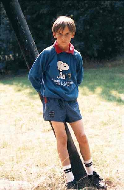 ![]() Figure 1.--This English boy swears a blue sweatshirt with a popular snoopy logo. |