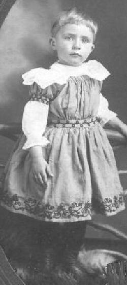 The late 19th century was a period of shifting styles and fashion. Many boys especially in the 1870s-80s continued to wear dresses, in some case relatively old boys. Some little boys wore all-white dresses, lavish with ruffles, sashes, extraordinary delicate eyelets and fine embroideries. On the other hand,some quite little boys were allowed to wear knee pants. Dress fashions varied considerably. Some quite plain dresses were made for boys and marketed as boy dresses, especially by the 1890s. Many dresses were marketed as chidren's dresses meaning that they could be worn by either boy or girls. There were also girls' dresses. Of course the final decission was the mothers in such matters and some mothers simply ignored such labels if a particular style appealed to her. Some quite elaborate styles trimed in lace and ruffles were also sold as boys dresses. The development of photography and the growing popularity of women's magazines meant that many more images and information is available on 19th century boys. A very substantial change occurred in the 1890s and by the turn-of-the 20th century it had become much less common for boys to wear dresses. Given that this was a common practice for 300-400 years, we are not sure why this very pronounced shift occurred in the 1890s.
