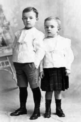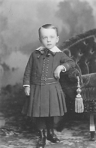 A reader writes, "Many years ago I asked my grandma (Who was born in 1874) why the little boys were in dresses in old photos. She said they were dressed that way to accomodate easier diaper changes and potty training. Grandma had 10 children 5 girls and 5 boys and I think she was right on the money. This was an age before snaps, zippers and washers and dryers. Dresses were less apt to get wet than tight fitting pants. Families had lots of children and had little time for extra laundry. Anyway, it makes sense to me."