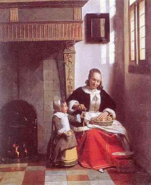 Figure 1.--I believe the artist here is Dutch painter Pieter de Hooch, a 17th century Dutch artist. Notice the ribbons on the little girl's dress. |