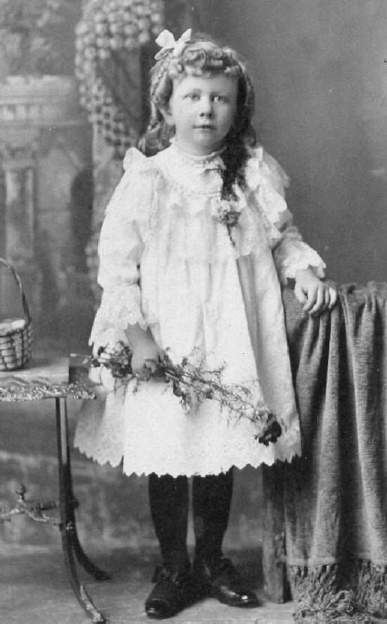![]() Figure 1.--Many boys in the late 19th century wore dresses with plainer styles than those worn by their sisters. This was not always the case. Some boys wore the same fancy dresses that their sisters wore. This boy's name was Bill. The portrait was taken in Peoria, Illinois. Bill looks to be about 5 years old. The portrait looks to have been taken in the early 1890s. |