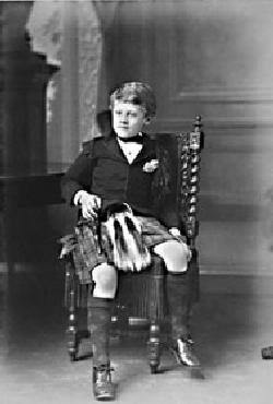 The Highland kilt is of course most associated with Scotland. Most of the boys wearing Highland kilts would have been Scottish boys. Many Scottish boys, however, wore plain kilts with out the complete Highland regalia. The black velvet jacket, for example, would have just been worn by boys from affluent families for dress occassions. We have noted boys from several other countries wearing Highland kilts. We have noted images from America, Canada, England, and France. The Higland kilt was probably worn in other countries as well, but not very commonly and we do not yet have confirmation for other countries. In counties other than Scotland boys might be nore likely to wear the dress Highland kilt outfit than a kilt with more ordinary clothes as the kilt was not normally worn in these other countries. An exception here was the kilt suit for younger boys which was especially popular in America.