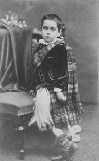The Highland kilt is of course most associated with Scotland. Most of the boys wearing Highland kilts would have been Scottish boys. Many Scottish boys, however, wore plain kilts with out the complete Hugland regalia. The black velvet jacket, for example, would have just been worn by boys from affluent families for dress occassions. We have noted boys from several other countries wearing Highland kilts. We have noted images from America, England, and France. The Higland kilt was probably worn in other countries as well, but not very commonly and we do not yet have confirmation for other countries. In counties other than Scotland boys might be nore likely to wear the dress Highland kilt outfit than a kilt with more ordinary clothes as the kilt was not normally worn in these other countries. An exception here was the kilt suit for younger boys which was especially popular in America.