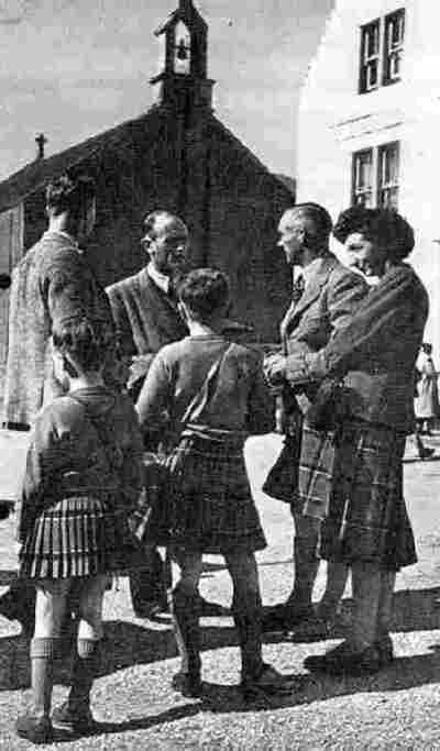 were not reserved entirely for the boy's best outfit. These kilts not worn for formal events were not worn with all the Higland regalia, such as caps, fancy blouses, jackets, sporrans, and Argyle kneesocks. Kilts were still seen at schools, but were only worn at a small minority of the boys. Many state and fee paying day schools had kilts as an option and many took them up. One HBC contributor reports that about 20 percent of boys at some primary schools in the 1950s might be kilted. The cost of a kilt may have affected how commonly it was worn. HBC is not sure how the cost of a kilt compared with trousers in the 19th century. It may not have been as high relative to trousers as is the case today. Scottish Scouts have continued to wear kilts, at least for formal events. Some troops insist upon it, some encourage it, while others didn't bother. Some Scottish boys before World War II (1939-45) appear to have worn kilts for casual wear. We believe they were mostly boys from affluent families. They might wear a kilt with a sweater for hiking, looking for eggs (boys use to collect bird eggs), and other activities. This became, however, much less common affter the war. While the kilt as casual wear declined after World War II, it continued to be worn as dress wear.