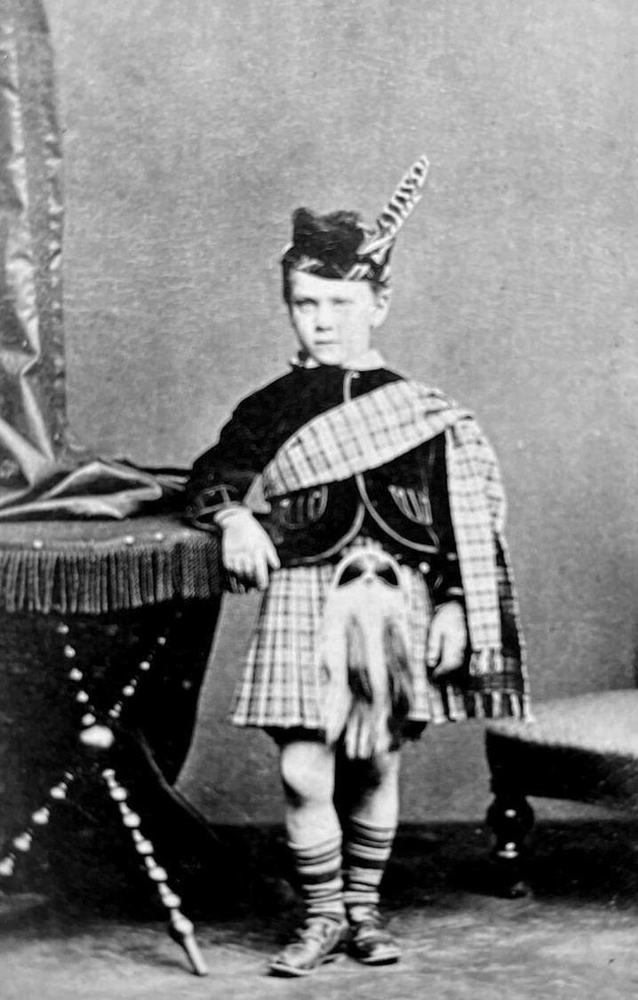The usage of the kilt has varied significantly on a regional basis within Scotland. Today it is universally revered within Scotland as a symbol of the nation, although very few Scotts commonly wear the garment. Historically it was the Highland Scotts that most commonly wore the kilt. The Lowland Scotts in southern Scotland were much more influenced by English culture and over time adopted French and English manners and dress. They like the English negan to look on the kilt as a symbol of barabarity of the Highland clans. They did not wear the kilt and certainly would not have dressed their boys in one. This seems to have befun to change in the 19th century. At least we begin to see Lowland boys having portraits made in kilts. Apparently the romantic Scottish revival of the late-18th/early 19th century children that Lowland attitudes began to change concerning the kilt. And by the time photography appeared we see bits throughout Scotland wearing kilts (mid-19th century). We suspect that the kilkt was much more common in the Highlands, but we do not yet have a lot of information on prevalence. The kilt was also commonly worn on the Western Isles. We have, however, very little information on the islnds at this time, but the kilt may have been prevalent there.