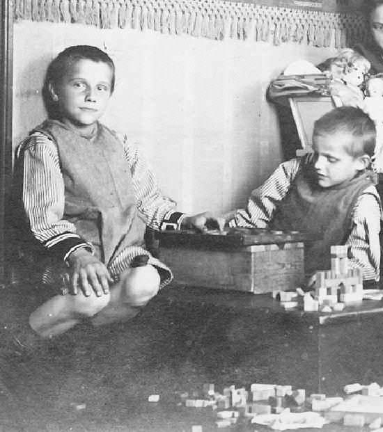As far as we can tell the pinafore and pinafore smock for boys in Germany was essentially a practical garment for home wear, to help mutter keep the children's clothes clean. The few available images we have show these garments being worn at home. Before World War I, school age boys might swear them, but after World War I they were exclusively worn by pre-school boys. Girls on the other hand might wear more traditioanlly styled pinafores other than around home, such as to school.