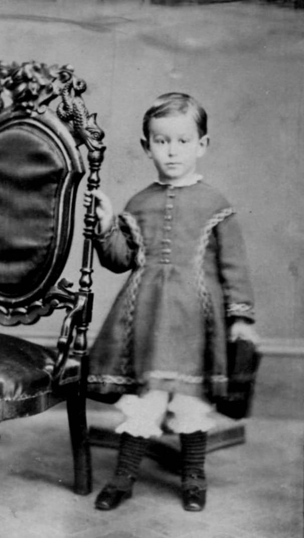 Pantalettes seem to have been primarily a 19th century fashion. Pantalettes were widely worn by American children in the first half of the 19th century and the gradually to a lesser extent in the later decades.. Both girls and boys wore them, at least boys not yet breeched. In the early 19th century boys when breeched wore long pants. At mid-century we begin the see shorteded length pants, primarily knee pants. And we begin to see some younger boys wearing oantalettes with knee pants. Gradually boys' pantalettes become plainer, but this convention varied from family to family. Pantalettes were very common through the 1850s. Pantalettes during the early 19th century could be quite long, covering the entire leg. We think this was mostly among urban families. We are less sure about rural areas. Pantalettes were still commonly worn after mid-century, especially the 50s. We still see them in the 60s, particularly the early 60s. A good example is Albert DuBois wjo looks to be wearing plain pantalettes during the 1860s. They begin to decline notably by the end of the decade and the early 70s. We continue to see them in the late-19th, but they became increasingly less common. In the latter part of the Century the boys still wearing pantalettes were boys wearing dresses are the increasingly common kilt suits and other kilted outfits. Pantalettes not only become less common, but they also become shorter.