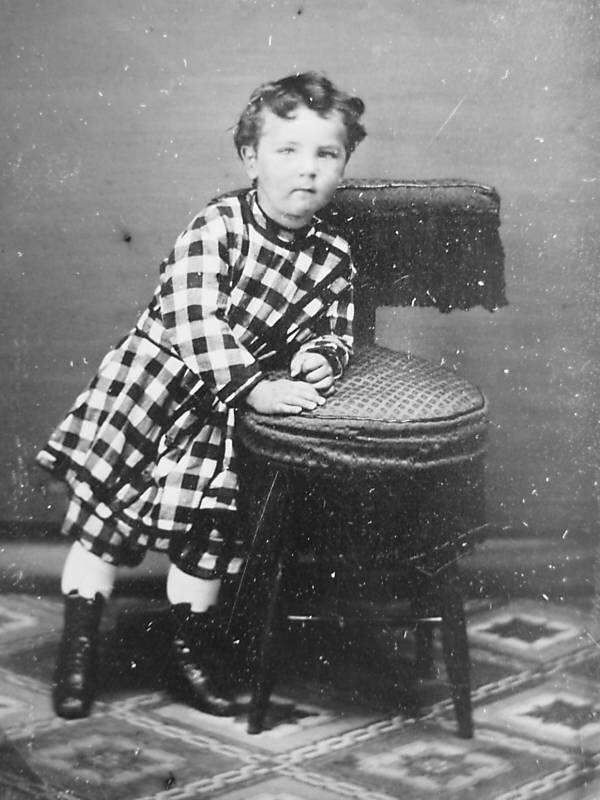 We do not know a lot about pantalettes colors and patterns because of our fairly limited archive of images. Most pantalettes we note are white. And we are fairly confident that this was the case. But we know that not all pantalettes were white. We think that there were some colored pantalettes, but they were much less common than the white ones. The black and white photography of the day makes it difficult to assess colors other than white. Dark colors were very rare. We also note a few pantalettes done in patterns. These almost always were done in the same pattern as the dress or other skirted garments the child was wearing. The unidentified boy here is a good example. We also notice Roy LaFolette who wears checked psntslettes mstching his summer kilt suit.