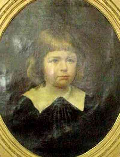 HBC has found a portrait of an unidentified American boy. We do not know his name or where he lived. The name Menger is written on the back of the portrait (strecher), but I am not positive that this is the name of the boy's family. He looks to be about 5 years old. He has shoulder-length hair, but they are not done in ringlets. He seems to be wearing a dark forrest green velvet smock. The garment is not shown in detail, so this is only a guess. Boys did not normally have their portraits done in smocks, but this looks to be a rather elegant smock. There appears to be some tassles hanging down from his collar, presimably taking the place of a bow. An E-Bay seller identified it as an ante-bellum portrait, but it looks more recent to us. Ante-bellum collars tended to be quite small. The large Eton-like collar suggests the 1890s.