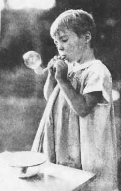 American boys in the 20th century seem to have worn smock even less than in the 19th century. We see quite a few girls wearing pimafores in the early-20th century, but not after that. Ans smocks were much less common. And with the advent of the family snapshot, they would show up if they were being worn to any extent. The extent of the photographic record and the ubiquity of the family snapshot means that prevalence is a very good indicator as to thec wxrent to which garmnts were actully worn. And we see very few examples of smocks in the 20th century photographic record. A few in the early part of the century, but not much after that. There seems to have been a social-class component here. The few example we see are boys from well-to-do families or at least substantial middle-class families. There is one exception to this. We do see some boys in school art classes or doing art at home wearing smocks. And we see some items in catalogs, but bery few examples of boys actully wearing smocks. they were not even very common for girls.