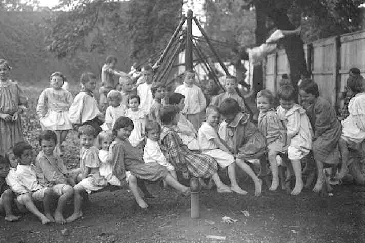 delapidated shoes or garment, the social service provided shoes and clothing, especially after World War I and II. We thought if these children didn't have shoes, perhaps they were not being fed right either. At the same time we had very rich people, with scandalous behaviour. A humane country has no right to accept that." Our French reader reflects the association in Europe of barefeet and poverty. It was very common for children to go barefoot, especilly in the South and during the Summer. Both boys and girls went barefoot, perghaps somewhat more common for the boys. There was an element of the European attitude in America. The children of really rich children did not go barefoot. Many children, especially before World Wr I is in America did gobarefoot, even to school. There was no stiigmna of poverty. Many children wanted to go barefoot, finding it more comfortable than shoes which often did mnot fit as well as shoes today. The invention of inexpensive canvas shoes with rubber soles was probably a factor in the general decline of the practice of going barefoot. Readers may want to consult the HBC barefoot pages for America and France to read about the differing attitudes.
