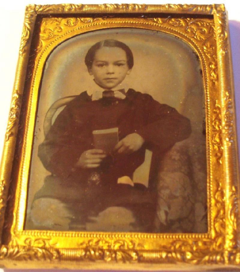 While our information is limited, we think thst it was fairly common for school-age boys to wear tunics up to their teens. This would mean mostly boys attending private schools. Free state educatiion was still limited, in this regard England lagged behind America and Germany. While as best we can tell, tunics were fairly commin, we believe thst it was mostly a fashion for boys from middle- and upper-class families. We do not think tunics were commonly worn by working-class boys. We do not have a loy of information on styles, but we notice white collars and stock-tie. The tunics seem to be mostly dark colors, possibly blue. We notice an unidentified boy wearing a blue tunic in the 1850s. That is a colorized image so we are not entirely sure about the actual color. We get a better idea in an actual painting which almost certainly recorded color to a fair degree of accuracy. We see Joseph Younghusband wearing a dark blue tunic suit. They were worn with a tange of trousers (long pants, drawers, and pantalettes), usually not matching the tunic. We note the tunics being worn with belts. While the images we have found all show long pants, our archive is no large enough to shgow all the boys wore long pants, but as far as we can tell that was by far the most common. We believe that these tunics were common schoolwear, but we are unsure about how commonly tunics were worn for other occassions.