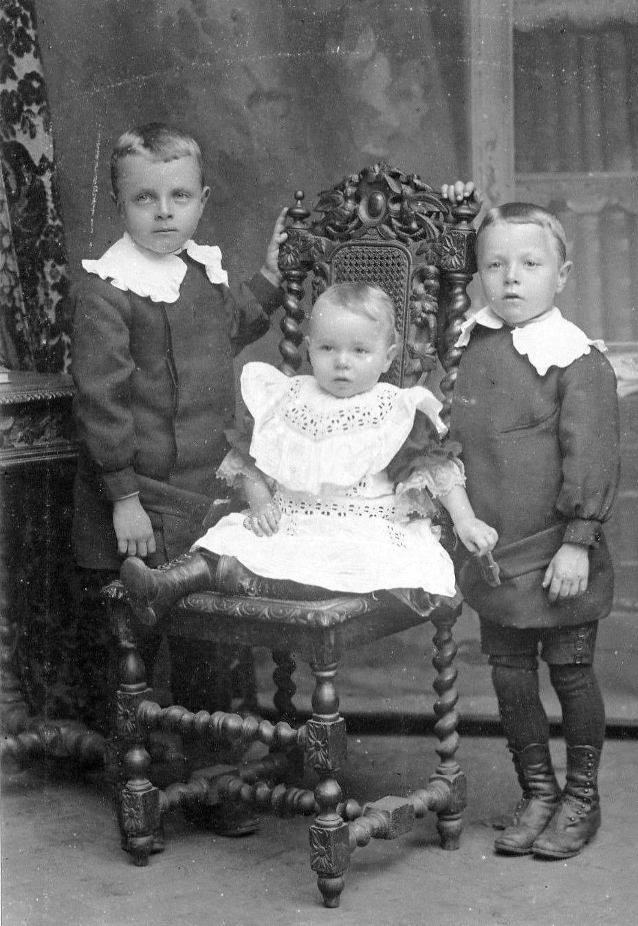 There was a renewed popularity of tunic suits at the turn-of-the 20th century. We see it in both Eurooe and America. The fashion, however, does not seem quite as popular in England as several other countries such as America and France. We have seen relatively few images of English wearing tunics at the turn-of-the 20th century. Our English archive is not as large as our American archive, but we have archived quite a number of images. We see tunic suits in which the tunic and pants match making them tunic suits. The pants seem to be mostly knee pants which you can see here (figure 1). While in France and especislly America we see a lot of bloomer knickers. The tunics suits worn by American and French boys in the early 20th Century seem much less common in England. The English tunics we have found seem shorter than what we see in America and France. English boys seem to have worn knee pants suits without the long tunics worn in France and America and were much more plain than the French suits. This is not to say that they were not worn, only that they were not as common. As in other countries there seems to be a social class factor, although the boys here do not seem to come from a well-to-do family (figure 1).